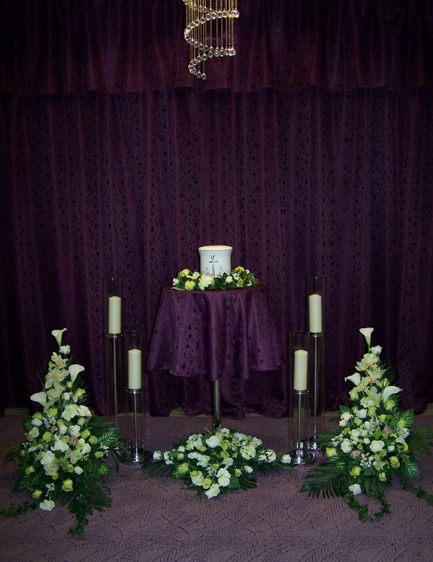 Dekoráció, berendezés, zene: letisztult, elegáns megjelenés. A diszkrét selyemvirág díszítés és valamennyi kellék bérleti díját tartalmazza a ravatalozó terem díja: